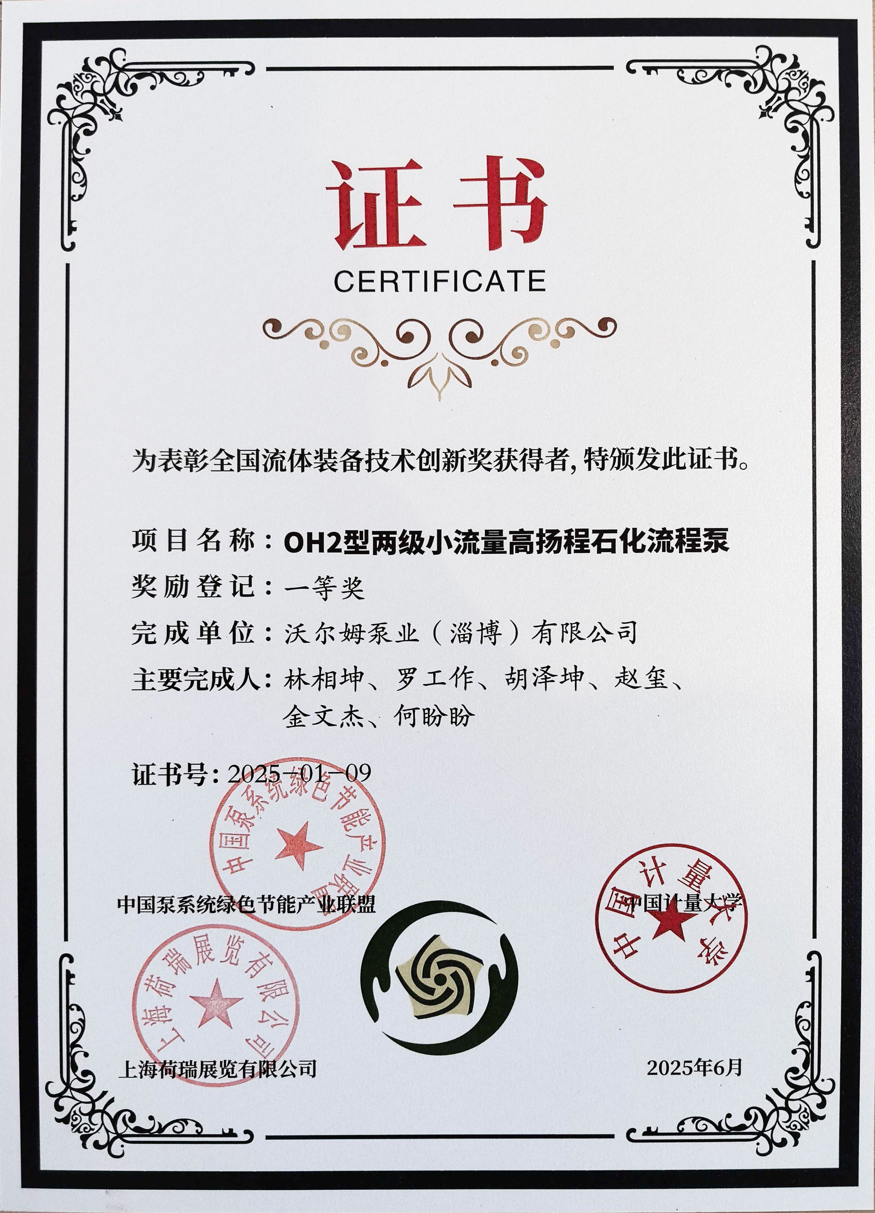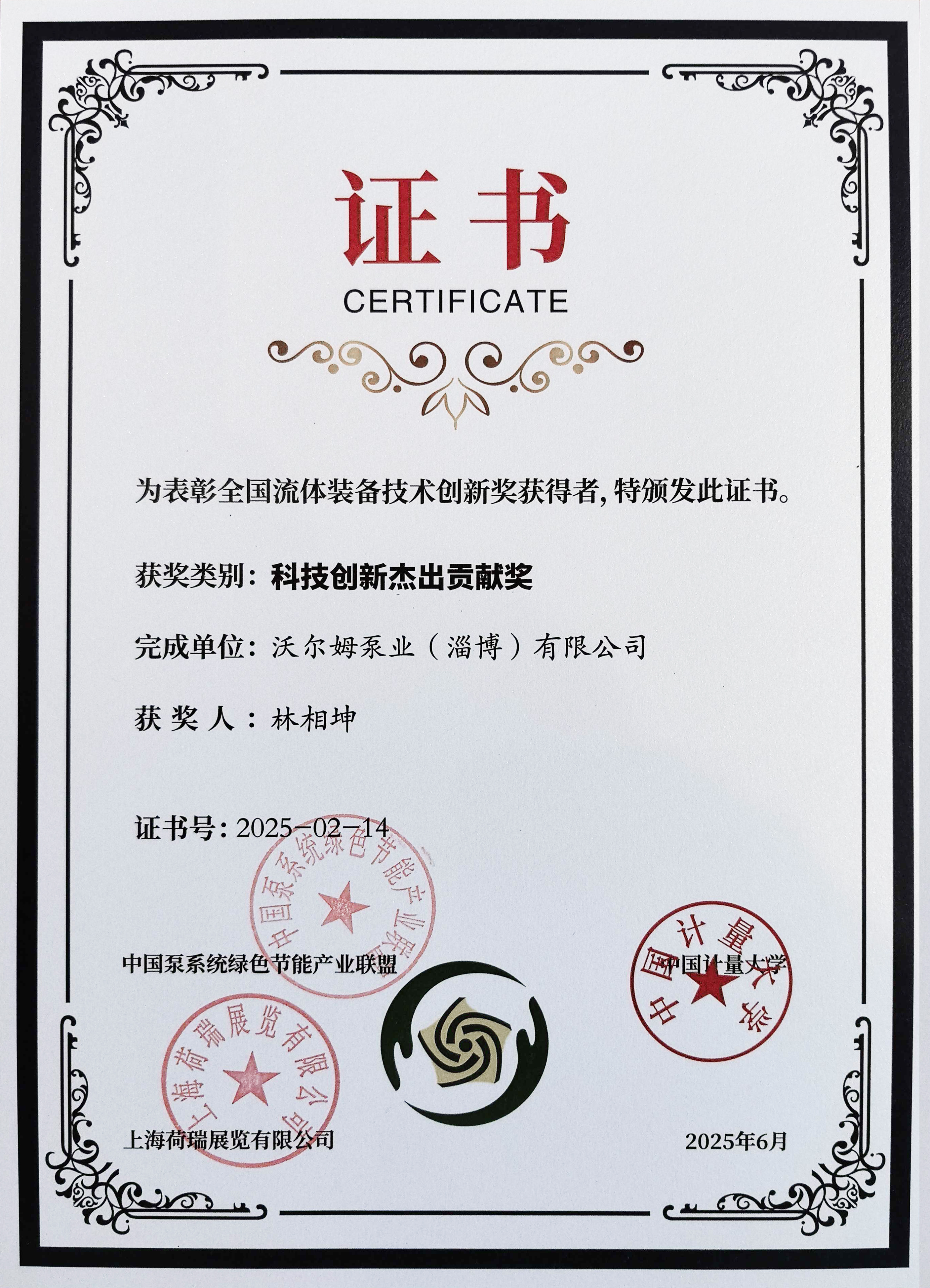 6月4日,在上海舉辦的第十三屆國際泵閥展會(huì)上,沃爾姆泵業(yè)憑借“OH2型兩級小流量高揚(yáng)程石化流程泵”獲得第四屆全國流體裝備技術(shù)創(chuàng)新獎(jiǎng)一等獎(jiǎng),董事長林相坤獲得個(gè)人科技創(chuàng)新杰出貢獻(xiàn)獎(jiǎng)。